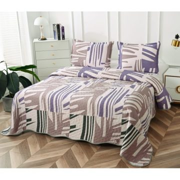 Cuvertura de pat matlasata cu 2 fete diferite, pat dublu, 3 piese, CM042