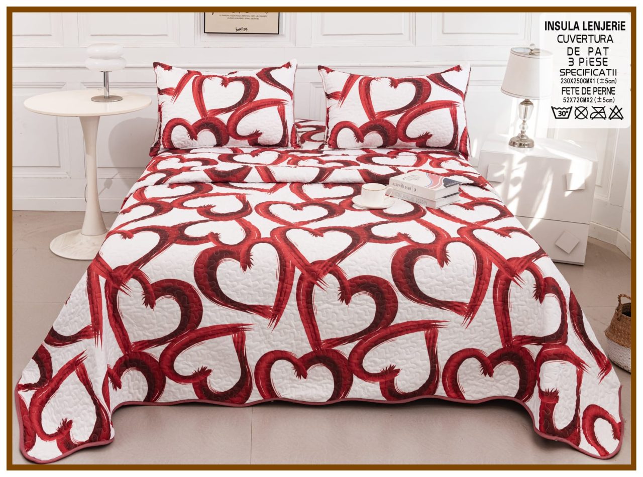 Cuvertura de pat matlasata cu 2 fete diferite, pat dublu, 3 piese, CM034