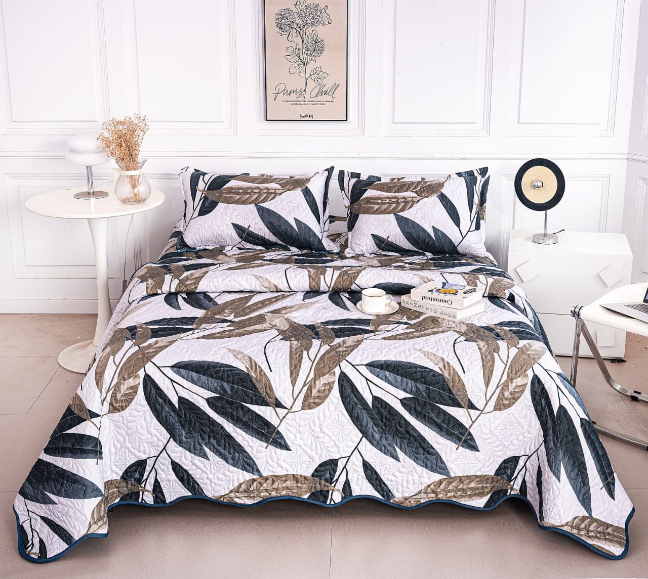 Cuvertura de pat matlasata cu 2 fete diferite, pat dublu, 3 piese, CM042