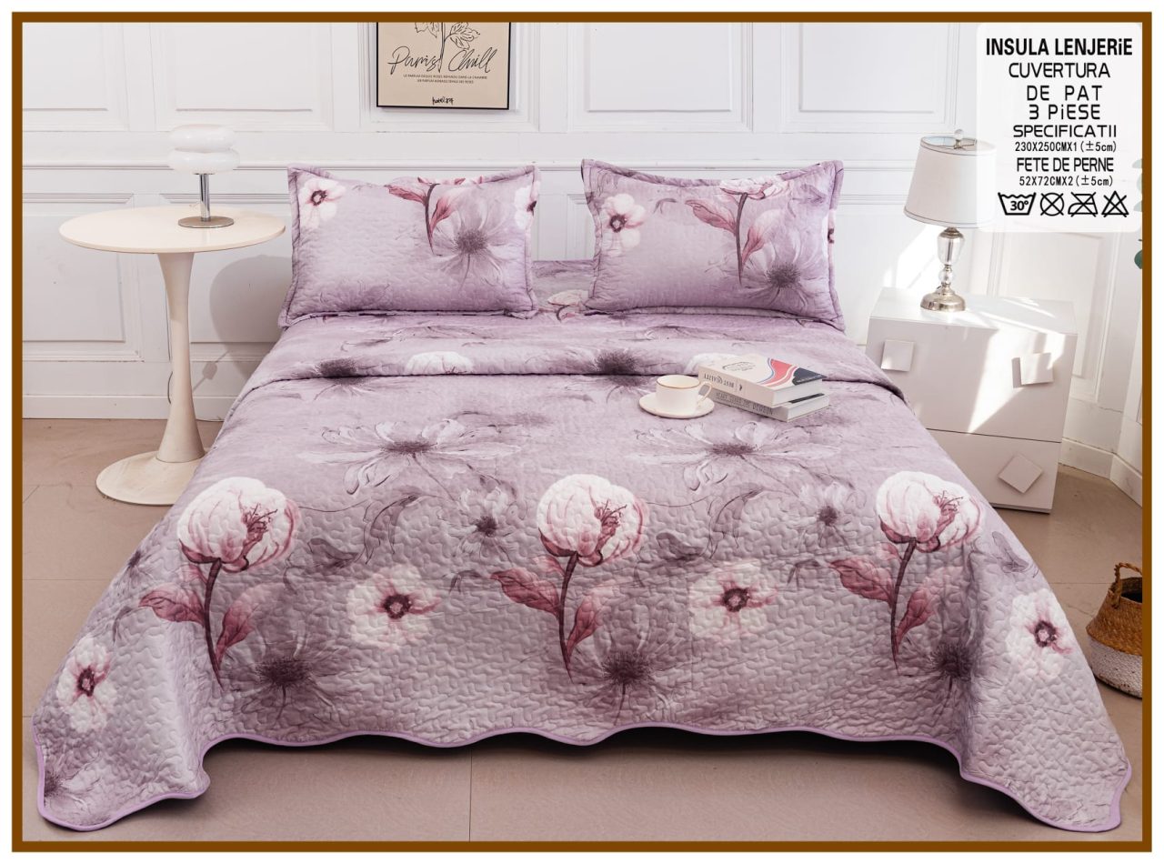 Cuvertura de pat matlasata cu 2 fete diferite, pat dublu, 3 piese, CM049