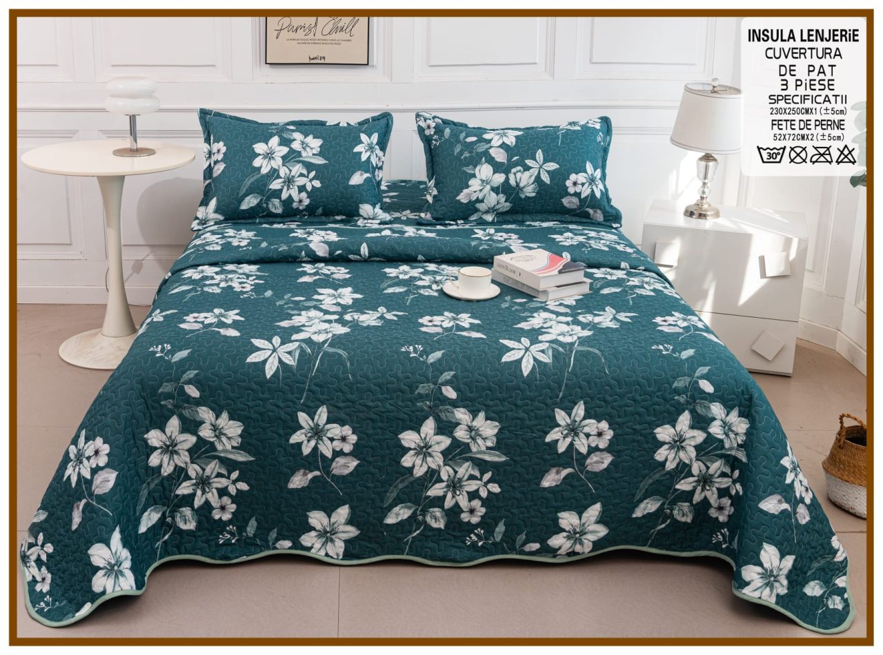 Cuvertura de pat matlasata cu 2 fete diferite, pat dublu, 3 piese, CM050