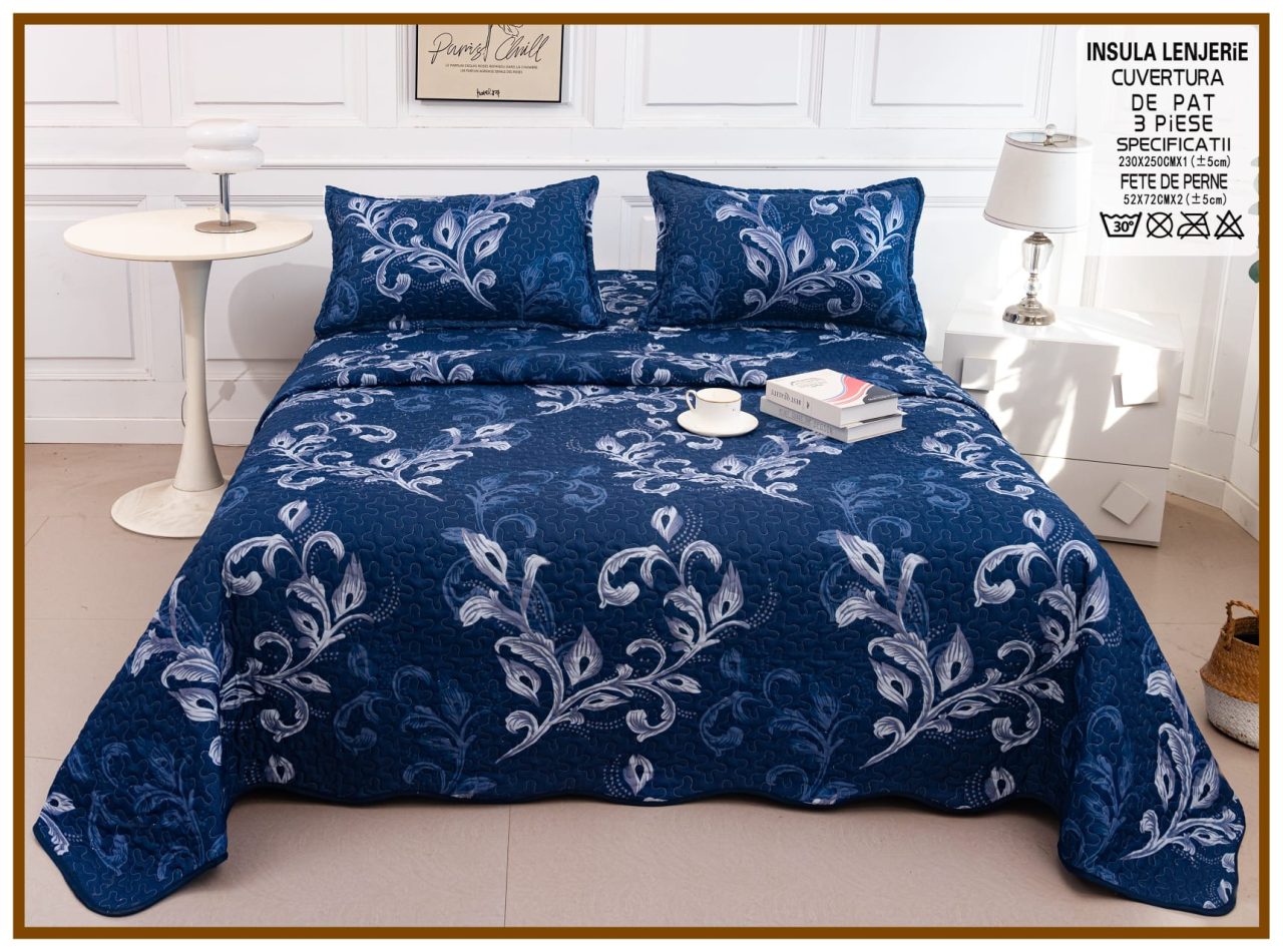 Cuvertura de pat matlasata cu 2 fete diferite, pat dublu, 3 piese, CM051