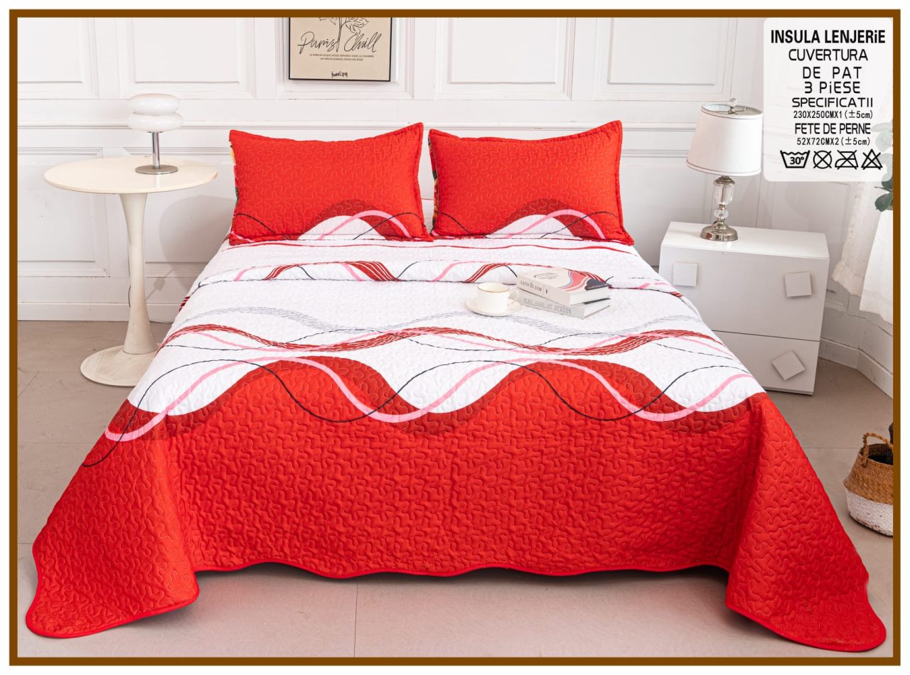 Cuvertura de pat matlasata cu 2 fete diferite, pat dublu, 3 piese, CM052