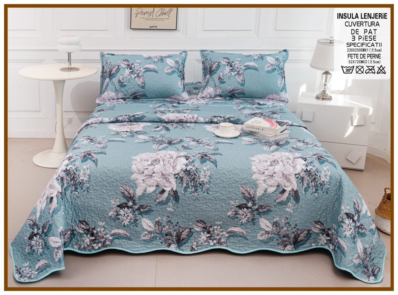 Cuvertura de pat matlasata cu 2 fete diferite, pat dublu, 3 piese, CM054
